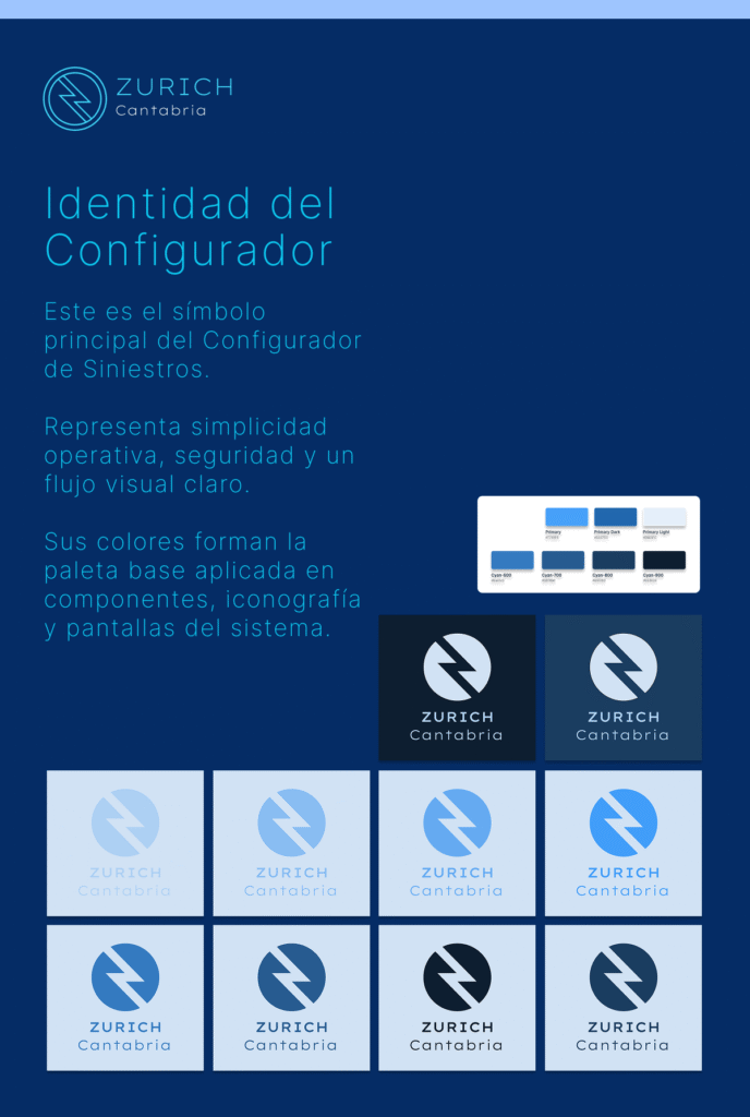 Lideré el diseño UX/UI del configurador de siniestros Zurich Cantabria, una herramienta interna desarrollada en Angular para optimizar la gestión de reclamaciones y la comunicación entre agentes, ajustadores y asegurados. El proyecto se enfocó en crear una interfaz modular, escalable y técnica, capaz de integrarse con los sistemas core de Zurich y de mejorar la precisión operativa en cada etapa del flujo de siniestro.