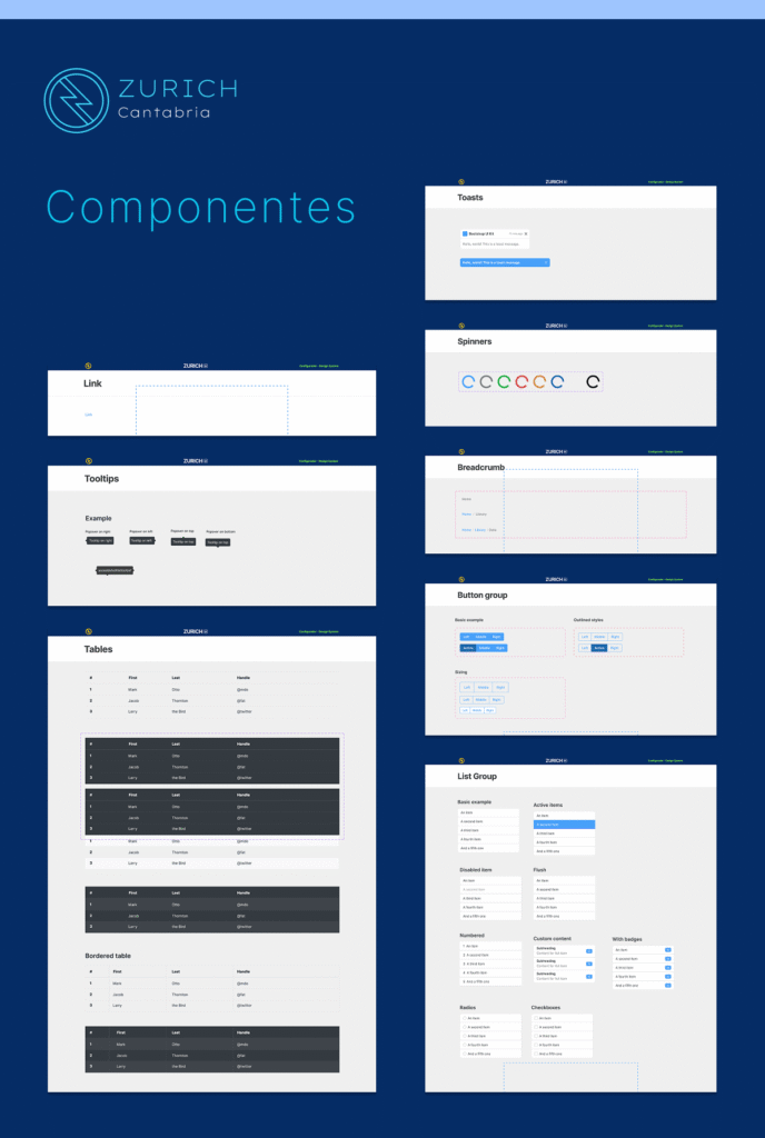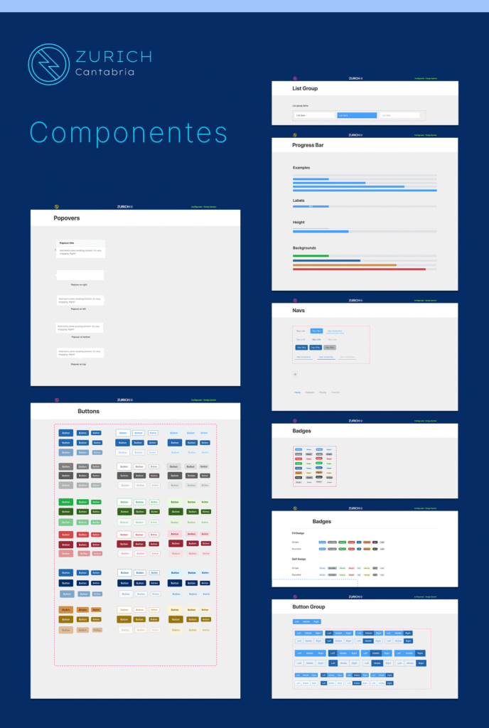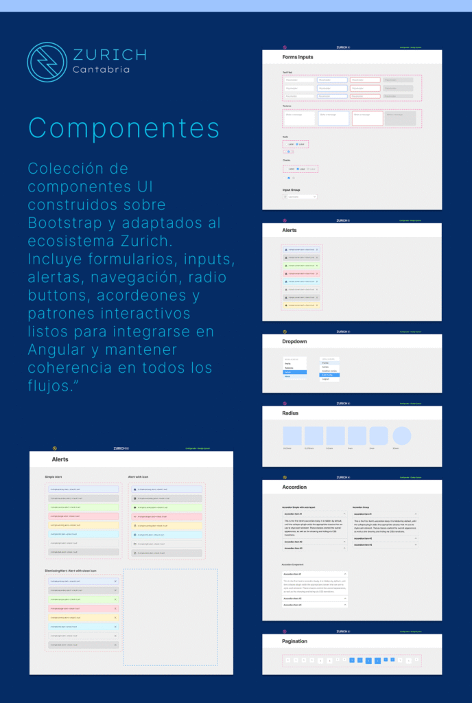 Durante el desarrollo de Zurich Cantabria, construí un sistema visual modular basado en Bootstrap, pensado para escalar componentes en Angular y mantener la coherencia de marca en cada entorno.